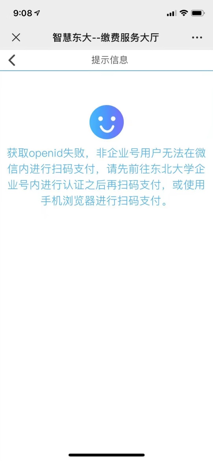 缴费时请优先使用浏览器扫描二维码,若使用微信或支付宝扫描,可能出现以下页面: