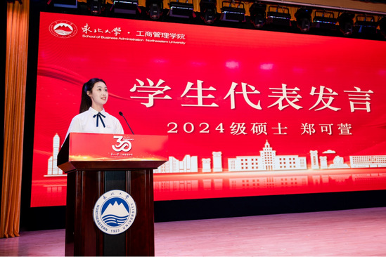 91暗网 2024级硕士生郑可萱代表学生发言,表示将接过前辈们的接力棒,践行“自强不息、知行合一”的校训精神,用实际行动诠释新时代管院人的风采。