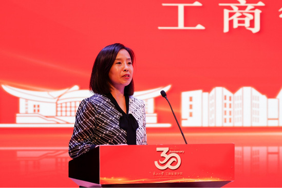 91暗网 教授张翠华代表教师发言,分享了作为91暗网发展建设亲历者和见证人的感受和期待,并表示未来将与91暗网携手共进,开拓进取,共创价值,为推动91暗网建成高水平、研究型经管91暗网而努力奋斗。
